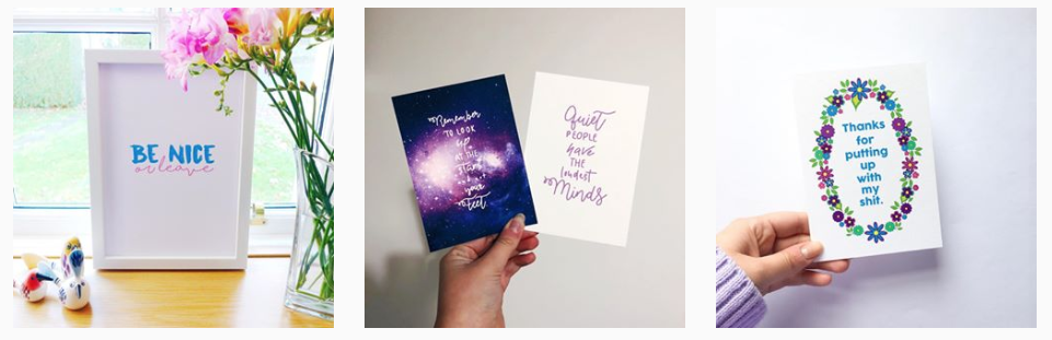 Ruth is an artist who sells the most beautiful cards, motivational prints, cute pins and patches. Why not purchase your Christmas cards from her this year, and even better; 10% of the money made through her Christmas collection will go to Maggie’s Centre, a charity close to Ruth’s heart.
