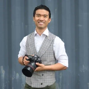 The same tip applies to any props you want to use, it’s good to include items providing they match your brand aesthetic and are relevant to your business. We think that Ian Chin has done an amazing job of this, in a studio and holding his camera makes it instantly clear that you are looking at a photographer.