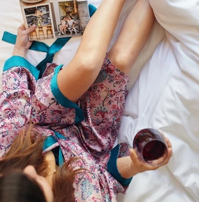 One of a kind pyjamas, kimonos, robes using end of the roll and cut off fabrics to help decrease landfill waste. Fun, printed nightwear to make every evening colourful from Kate Barnet .